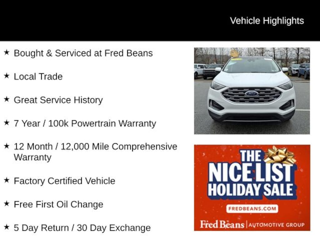 As a Ford Gold Certified pre-owned vehicle, this Edge has undergone a rigorous 172-point inspection and comes with a comprehensive warranty package. Enjoy the peace of mind of a 12-month/12,000-mile limited warranty, an 84-month/100,000-mile powertrain warranty, and 22,000 FordPass Rewards Points to use towards your first two maintenance visits.