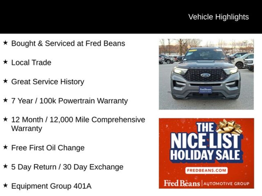 As a Ford Gold Certified pre-owned vehicle, this 2023 Explorer ST has undergone a rigorous 172-point inspection and comes with a wealth of benefits to give you the ultimate peace of mind. Enjoy the reassurance of a 12-month/12,000-mile limited warranty, a transferable powertrain warranty, and 22,000 FordPass Rewards Points to use towards your first two maintenance visits.