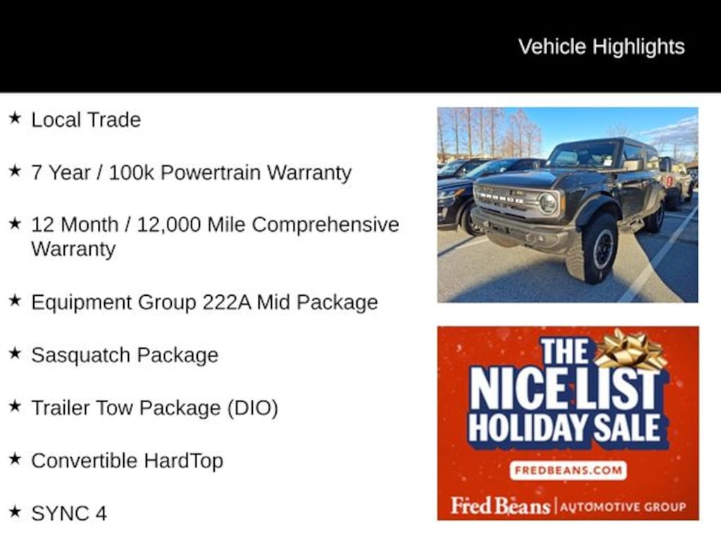 As a Ford Gold Certified pre-owned vehicle, this Bronco has undergone a rigorous 172-point inspection and comes with a comprehensive warranty package. You can drive with confidence, knowing that your investment is protected.