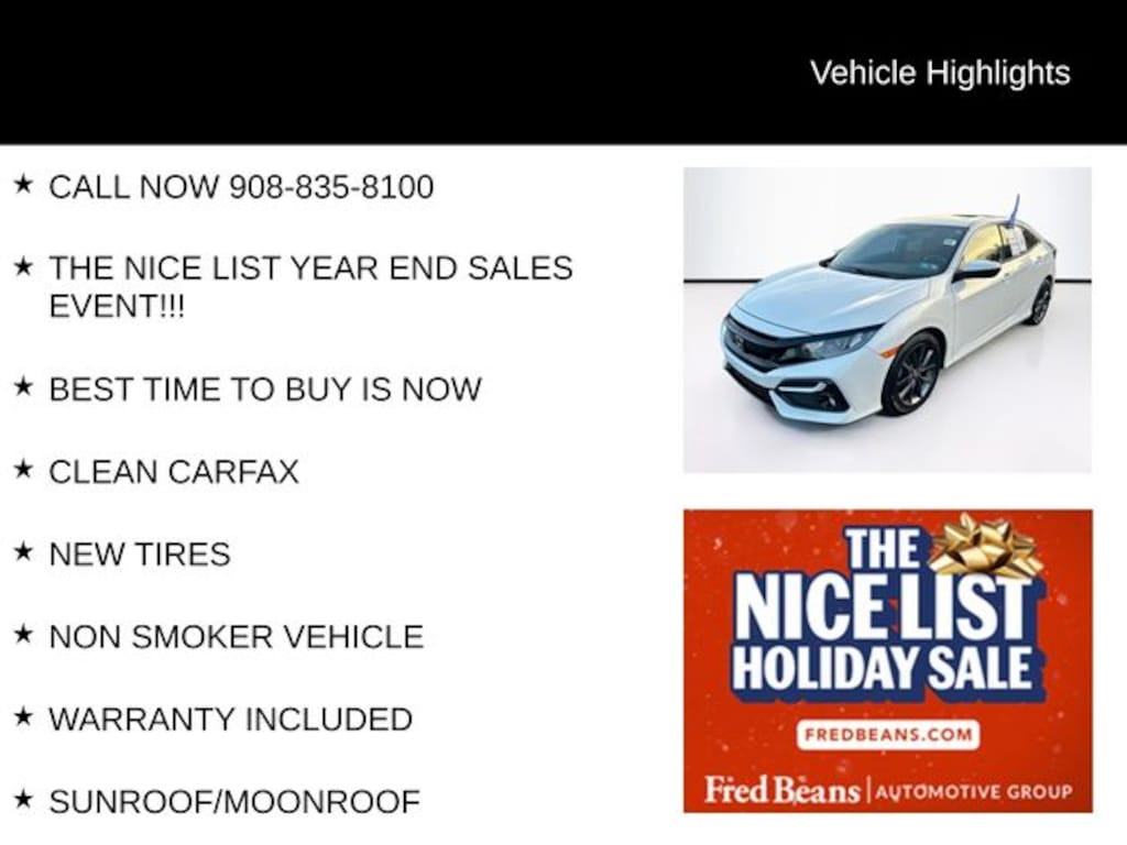 Don't miss your opportunity to own this exceptional 2021 Honda Civic EX. Call 908-835-8100 now to schedule a test drive and experience the difference for yourself. We're confident you'll be impressed by the quality, performance, and value of this remarkable vehicle.