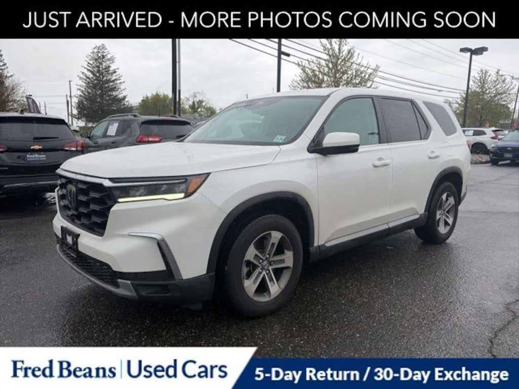 Recent Arrival! 2023 Honda Pilot EX-L 8 Passenger EX-L 3.5L V6 DOHC 24V 10-Speed Automatic AWD 4D Sport Utility White Great Service History, 12 Month / 12,000 Mile Comprehensive Warranty, Triton Certified Classic Vehicle, 5 Day Return / 30 Day Exchange, Auto Reward Program, AWD.