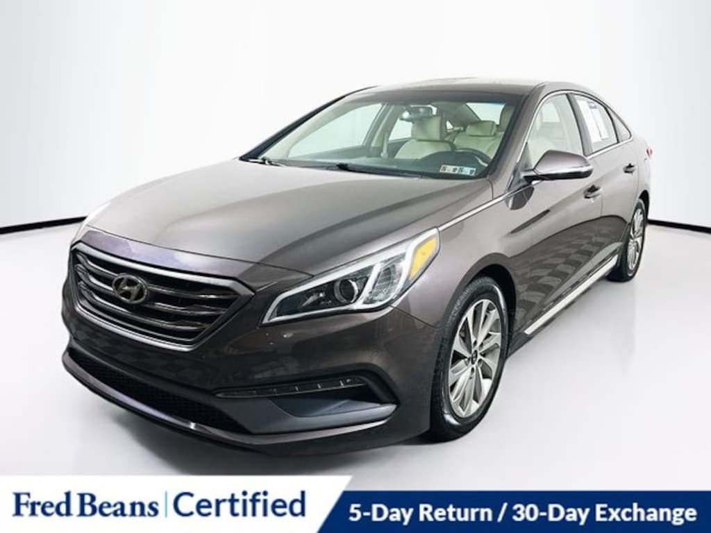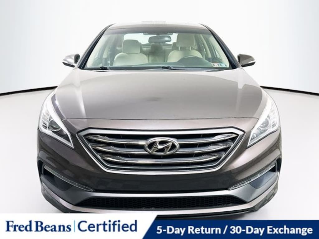 2015 Hyundai Sonata Sport Sport 2.4L I4 DGI DOHC 16V PZEV 185hp 6-Speed Automatic with Shiftronic FWD 4D Sedan Dark Truffle Bought & Serviced at Fred Beans, Local Trade, Great Service History, Triton Certified Classic Vehicle, 3 Month / 4,000 Mile Comprehensive Warranty, Free First Oil Change, 5 Day Return / 30 Day Exchange, Auto Rewards Program, Beige Cloth, Exterior Parking Camera Rear, Fully automatic headlights, Heated door mirrors, Heated front seats, Illuminated entry, Power door mirrors, Power driver seat, Premium Cloth Seating Surfaces, Radio: AM/FM/SiriusXM/CD/MP3 Audio System, Steering wheel mounted audio controls, Turn signal indicator mirrors, Wheels: 17 x 7.0J Aluminum Alloy.