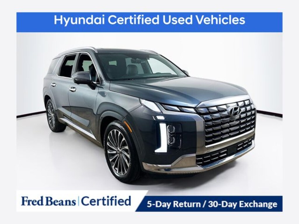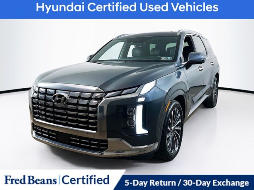 2023 Hyundai Palisade Calligraphy V6 8-Speed Automatic with SHIFTRONIC AWD 4D Sport Utility Steel Graphite Factory Certified Vehicle, Free First Oil Change, 5 Day Return / 30 Day Exchange, Auto Reward Program, 5 Year / 60,000 miles comprehensive OISD, 10 Year / 100,000 miles powertrain OISD 10 Year / 100,000 miles powertrain OISD 10 Year / 100,000 miles powertrain OISD 10 Year / 100,000 miles powertrain OISD, ABS brakes, Apple CarPlay & Android Auto, Cargo Blocks, Cargo Net, Cargo Package, Cargo Tray, Emergency communication system: Blue Link Connected Car Service (3-year complimentary subscription), Exterior Parking Camera Rear, Front dual zone A/C, harman/kardon® Speakers, Heads-Up Display, Heated & Ventilated Front Bucket Seats, Heated rear seats, Memory seat, Navigation System, Option Group 01, Power Liftgate, Power moonroof, Premium Nappa Leather Seat Trim, Rear anti-roll bar, Rear Bumper Applique, Remote keyless entry, Steering wheel mounted audio controls, Ventilated rear seats.