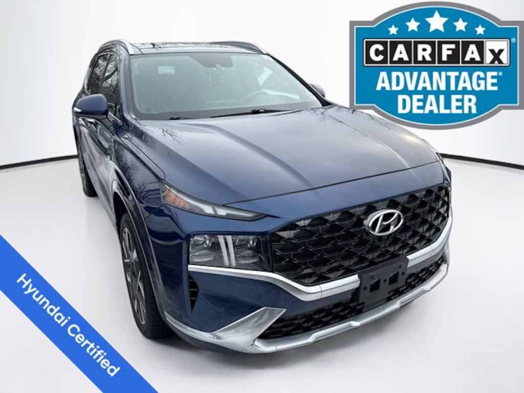 Recent Arrival! 2023 Hyundai Santa Fe Calligraphy 2.5L I4 Shiftronic AWD 4D Sport Utility Stormy Sea Factory Certified Vehicle, 5 Day Return / 30 Day Exchange, Auto Reward Program, AWD, Black Leather, AM/FM radio: SiriusXM, Apple CarPlay & Android Auto, Auto High-beam Headlights, Auto-dimming Rear-View mirror, Automatic temperature control, Exterior Parking Camera Rear, Front dual zone A/C, Fully automatic headlights, Heads-Up Display, Heated & Ventilated Front Bucket Seats, Heated door mirrors, Heated front seats, Heated rear seats, Memory seat, Navigation System, Option Group 01, Power door mirrors, Power driver seat, Power Liftgate, Power moonroof, Power passenger seat, Radio: AM/FM Harman Kardon Display Audio, Rain sensing wipers, Remote keyless entry, Steering wheel mounted audio controls, Ventilated front seats.