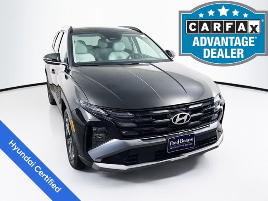 ***One Owner Clean Carfax Hyundai Certified*** Recent Arrival! 2025 Hyundai Tucson Hybrid SEL Convenience 1.6L I4 DGI Hybrid Turbocharged DOHC 16V LEV3-SULEV30 6-Speed Automatic AWD 4D Sport Utility Ash Black Factory Certified Vehicle, Free First Oil Change, 5 Day Return / 30 Day Exchange, Auto Reward Program, 1.6L I4 DGI Hybrid Turbocharged DOHC 16V LEV3-SULEV30, AM/FM radio: SiriusXM, Apple CarPlay & Android Auto, Auto High-beam Headlights, Automatic temperature control, Front dual zone A/C, Fully automatic headlights, Heated door mirrors, Heated Front Bucket Seats, Heated front seats, Navigation System, Option Group 01, Power door mirrors, Power driver seat, Power Liftgate, Power moonroof, Remote keyless entry, Steering wheel mounted audio controls.