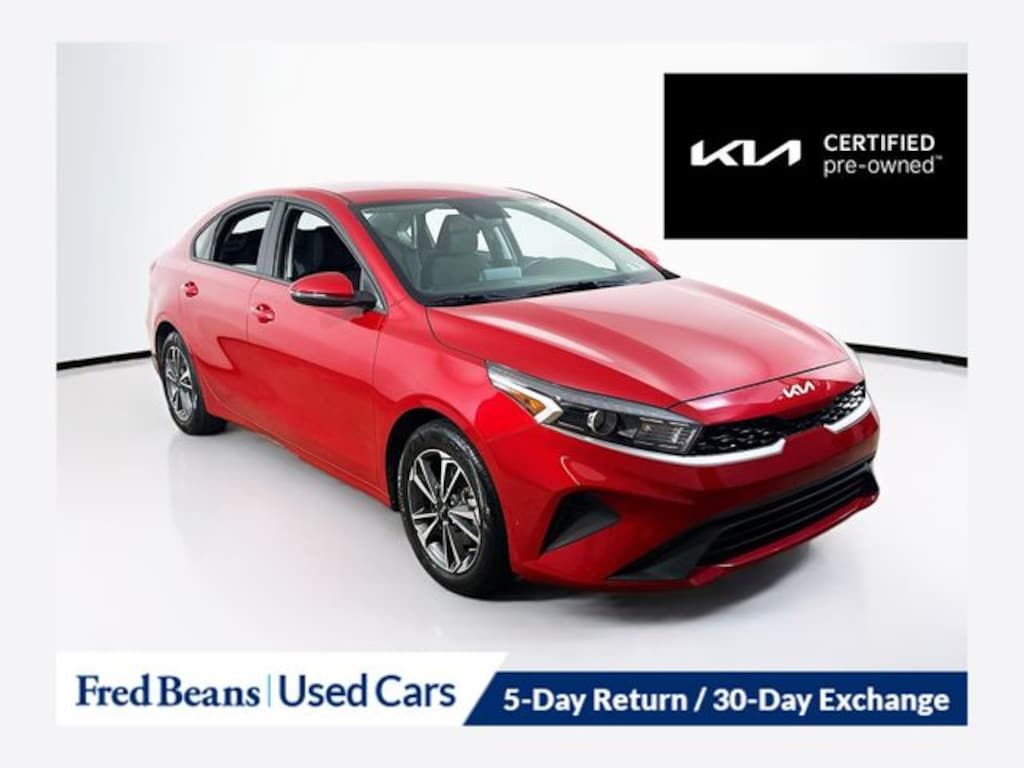 2023 Kia Forte LXS 2.0L I4 MPI CVT FWD 4D Sedan Currant Red Kia Certified Pre-Owned Certified, 16" x 6.5J Alloy Wheels, 4 Speakers, 4-Wheel Disc Brakes, ABS brakes, Air Conditioning, Alloy wheels, AM/FM radio, Apple CarPlay & Android Auto, Auto High-beam Headlights, Blind-Spot Collision Avoidance (BCA), Brake assist, Bumpers: body-color, Cargo Mat, Carpet Floor Mats, Cloth Seat Trim, Delay-off headlights, Driver door bin, Driver vanity mirror, Dual front impact airbags, Dual front side impact airbags, Electronic Stability Control, Exterior Parking Camera Rear, Front anti-roll bar, Front Bucket Seats, Front Center Armrest, Front reading lights, Front wheel independent suspension, Fully automatic headlights, Heated Outside Mirrors, Illuminated entry, LED Turn Signal w/Outside Mirror Indicators, Low tire pressure warning, LXS Technology Package, Occupant sensing airbag, Outside temperature display, Overhead airbag, Overhead console, Panic alarm, Passenger door bin, Passenger vanity mirror, Power door mirrors, Power steering, Power windows, Radio data system, Radio: 8" Display Audio, Rear Cross-Traffic Collision Avoidance (RCCA), Rear window defroster, Remote keyless entry, Safe Exit Warning (SEW), Security system, Speed control, Split folding rear seat, Steering wheel mounted audio controls, Tachometer, Telescoping steering wheel, Tilt steering wheel, Traction control, Trip computer, Variably intermittent wipers.