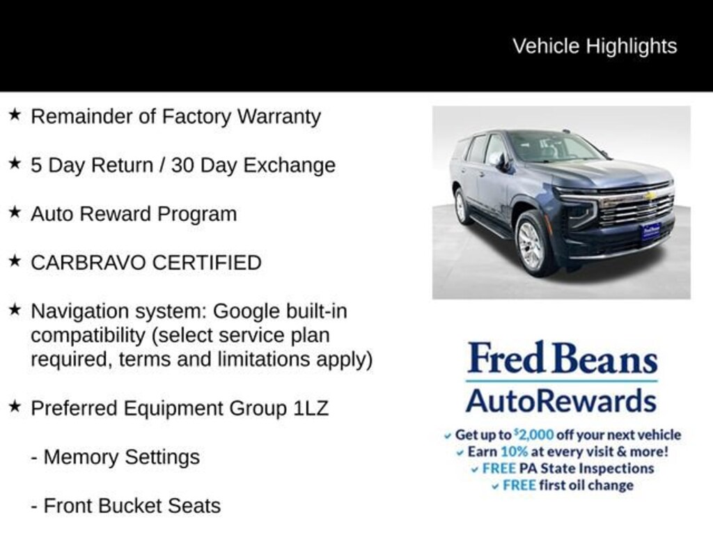 Experience the unparalleled combination of power, technology, and luxury that this 2025 Chevrolet Tahoe Premier has to offer. Visit our showroom today and let us demonstrate why this exceptional SUV is the perfect choice for your next adventure.