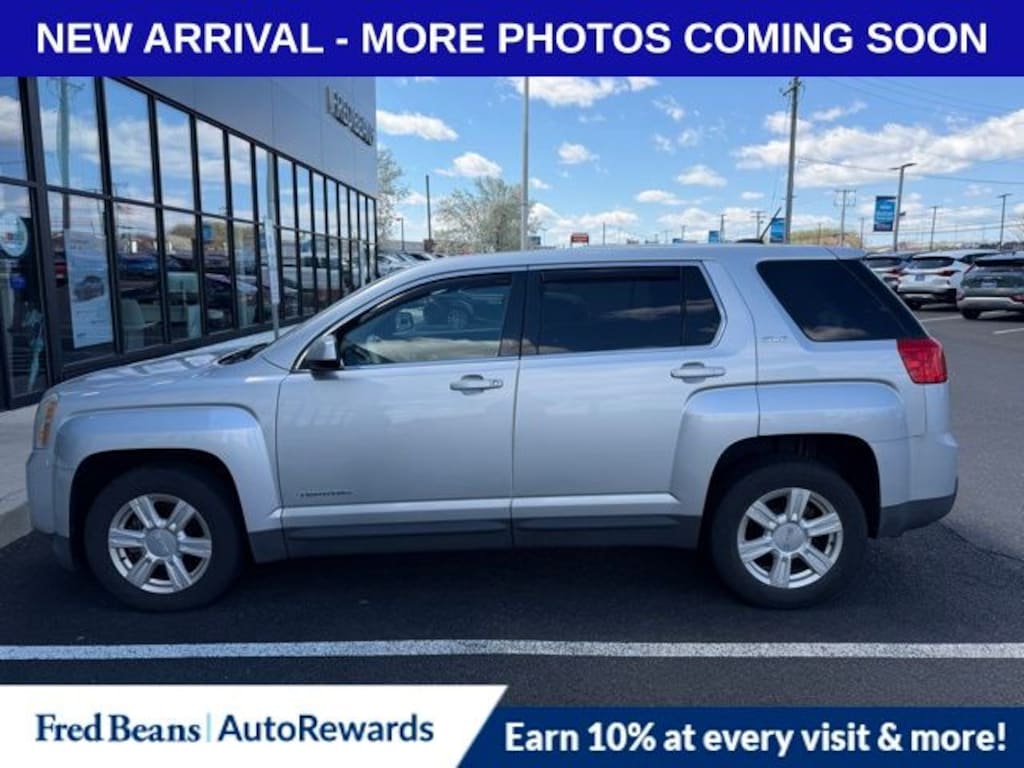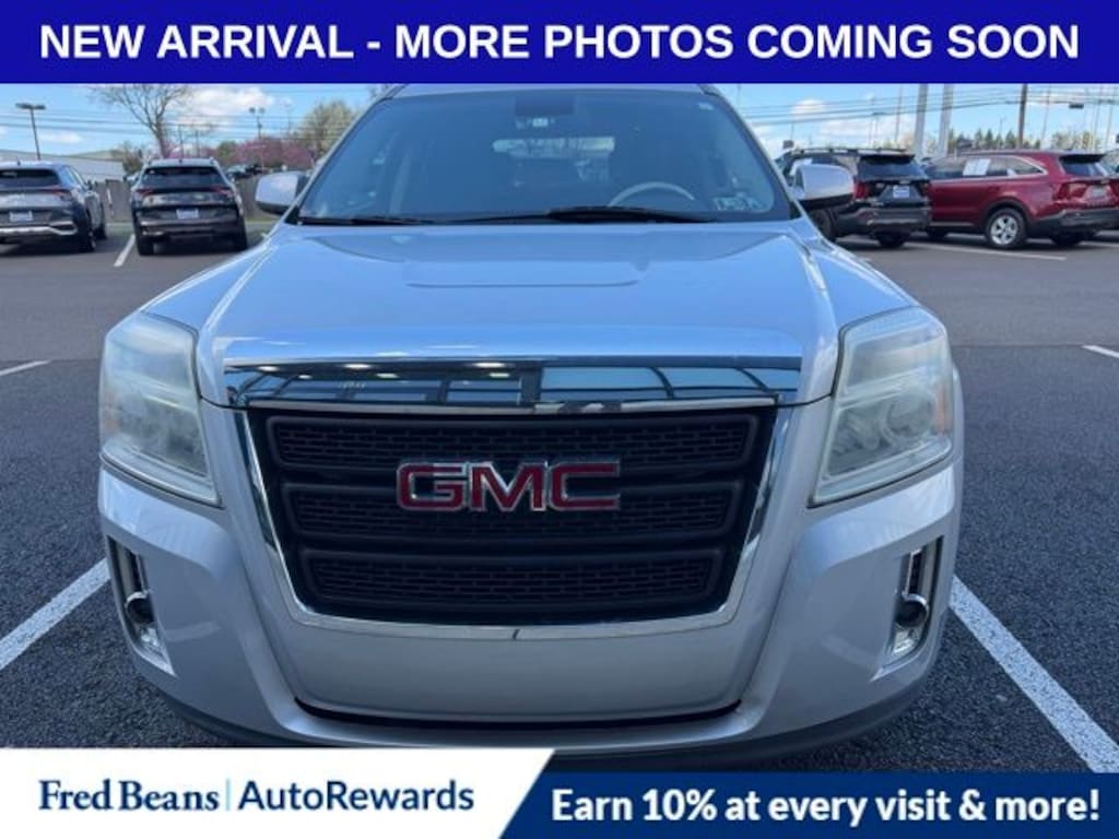 Recent Arrival! 2015 GMC Terrain SLE-1 2.4L 4-Cylinder SIDI DOHC VVT 6-Speed Automatic FWD 4D Sport Utility Quicksilver Metallic 17" x 7" Aluminum Wheels, 3.23 Axle Ratio, 4-Wheel Disc Brakes, 6 Speakers, 6-Speaker Audio System Feature, ABS brakes, Air Conditioning, Alloy wheels, AM/FM radio: SiriusXM, Auto-dimming Rear-View mirror, Bluetooth® For Phone, Brake assist, Bumpers: body-color, CD player, Cloth Seat Trim, Compass, Delay-off headlights, Driver door bin, Driver vanity mirror, Dual front impact airbags, Dual front side impact airbags, E10 Fuel Capable, Electronic Stability Control, Emergency communication system: OnStar Directions & Connections, Exterior Parking Camera Rear, Four wheel independent suspension, Front anti-roll bar, Front Bucket Seats, Front Center Armrest, Front fog lights, Front reading lights, Fully automatic headlights, Heated door mirrors, Illuminated entry, Low tire pressure warning, Occupant sensing airbag, Outside temperature display, Overhead airbag, Panic alarm, Passenger door bin, Passenger vanity mirror, Power door mirrors, Power driver seat, Power steering, Power windows, Preferred Equipment Group 3SA, Radio data system, Radio: Color Touch AM/FM Stereo w/CD Player, Rear anti-roll bar, Rear seat center armrest, Rear window defroster, Rear window wiper, Remote keyless entry, Security system, Single-Zone Manual Front Climate Control, SiriusXM Satellite Radio, Speed control, Speed-sensing steering, Split folding rear seat, Spoiler, Steering wheel mounted audio controls, Tachometer, Telescoping steering wheel, Tilt steering wheel, Traction control, Trip computer, Variably intermittent wipers.