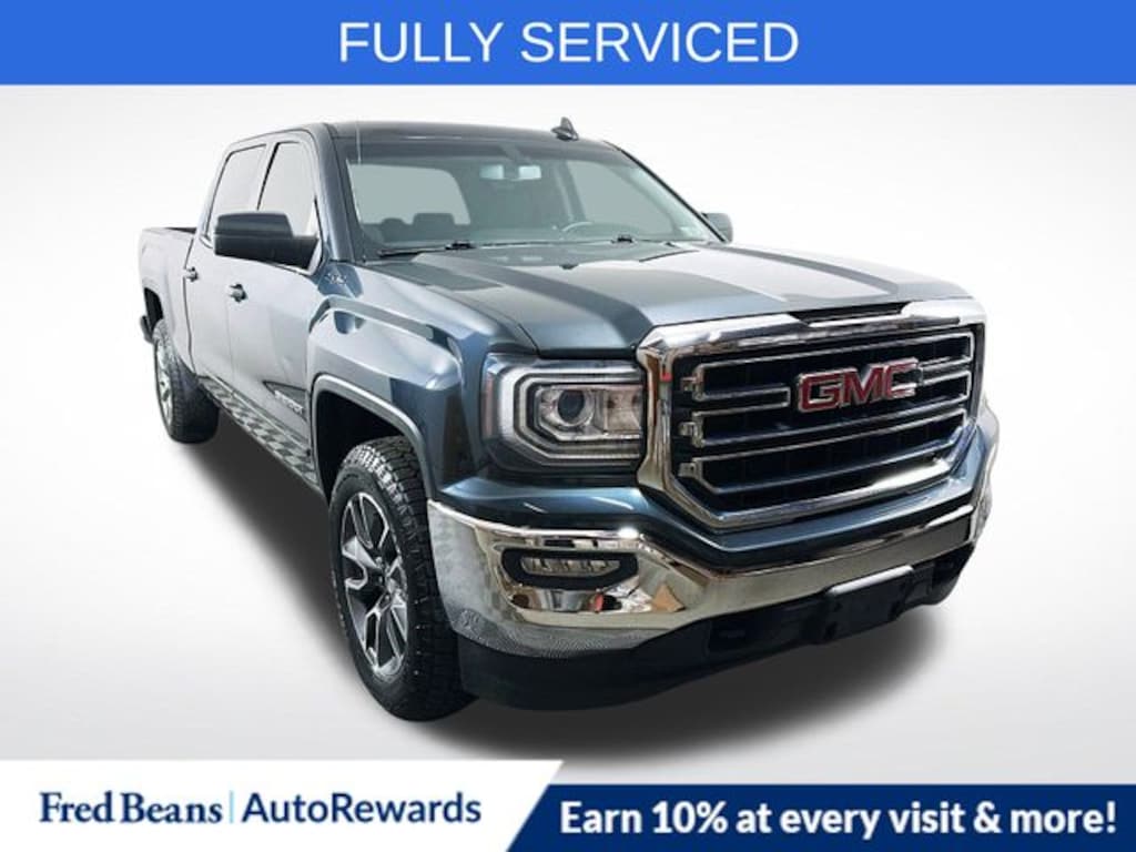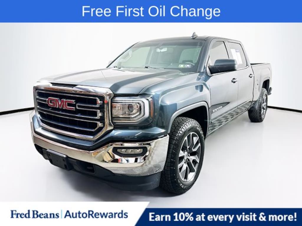 FULLY SERVICED, WARRANTY INCLUDED, Free First Oil Change, 5 Day Return / 30 Day Exchange, Auto Reward Program, 90 DAY/4,000 MILE POWERTRAIN COVERAGE, 90 DAY/4,000 MILE COMPREHENSIVE COVERAGE, CALL NOW !!! - 908-835-8100, 6-Speed Automatic Electronic with Overdrive, 4WD, Black Cloth, 10-Way Power Driver's Seat Adjuster, 6 Speakers, 6" Rectangular Chromed Tubular Assist Steps, Bumpers: chrome, CD player, Exterior Parking Camera Rear, EZ Lift & Lower Tailgate, Heated door mirrors, Heavy Duty Suspension, Heavy-Duty Rear Locking Differential, Leather Wrapped Steering Wheel w/Cruise Controls, LED Cargo Box Lighting, Preferred Equipment Group 3SA, Premium audio system: GMC Infotainment System, Remote Keyless Entry, Remote Locking Tailgate, Single Slot CD/MP3 Player, SLE Value Package, Steering Wheel Audio Controls, Trailering Equipment. 2018 GMC Sierra 1500 SLE EcoTec3 5.3L V8 6-Speed Automatic Electronic with Overdrive 4WD 4D Crew Cab Dark Slate Metallic