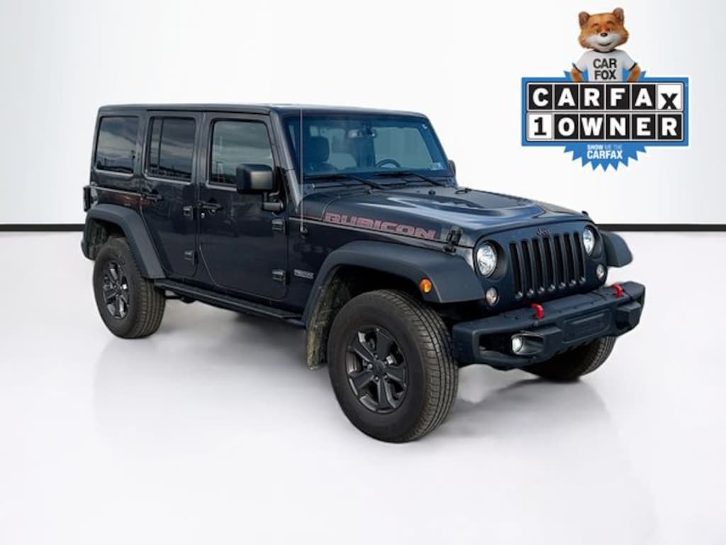 2018 Jeep Wrangler JK Unlimited Rubicon 3.6L V6 24V VVT 6-Speed Manual 4WD 4D Sport Utility Granite Crystal Metallic Clearcoat Visit our Website for a Complimentary CarFax Report!!!, Local Trade, Great Service History, 3 Month / 4,000 Mile Comprehensive Coverage, Free First Oil Change, Auto Reward Program, 6.5" Touchscreen Display, Accent Stitching, Air Conditioning w/Auto Temperature Control, Alpine 9-Speaker w/All Weather Subwoofer, Connectivity Group, Dana 44/226MM Rear Axle, Fully automatic headlights, GPS Navigation, HD Rock Rails w/Step Pad, Heated Front Seats, Hood w/Power Dome, Midnight Star Interior Accents, MOPAR Black Tail Lamp Guards, Premium Black Sunrider Soft Top, Quick Order Package 23Z Rubicon Recon, Recon Leather Seats, Recon Package, Red Front & Rear Tow Hooks, Red Seat Belts, Remote keyless entry, Steel Front Bumper, Steel Rear Bumper, Sunrider Soft Top, Uconnect Voice Command w/Bluetooth, 17" x 7.5" Polished Mineral Gray Wheels, 4-Wheel Disc Brakes, 4.10 Rear Axle Ratio, 40GB Hard Drive w/28GB Available, 5-Year SiriusXM Travel Link Service, 8 Speakers, ABS brakes, Air Conditioning, Air Filtering, Alloy wheels, AM/FM radio: SiriusXM, Audio Jack Input for Mobile Devices, Auto-dimming Rear-View mirror, Black Fuel Filler Door, Brake assist, CD player, Cloth Seats w/Adjustable Head Restraints, Compass, Dana M44/216MM Front Axle, Delete Sunrider Soft Top, Driver door bin, Driver Height Adjuster Seat, Driver vanity mirror, Dual front impact airbags, Electronic Stability Control, Freedom Panel Storage Bag, Front anti-roll bar, Front Bucket Seats, Front Center Armrest w/Storage, Front fog lights, Front reading lights, Front Seat Back Map Pockets, Heated door mirrors, Humidity Sensor, Illuminated entry, Integrated roll-over protection, Jeep Trail Rated Kit, Leather steering wheel, Logloss Granite Crystal Jeep Badge, Low Gloss Wrangler JK Decal, Low tire pressure warning, MOPAR Grab Handles, MOPAR Slush Mats w/Red Accents, Occupant sensing airbag, Outside temperature display, Panic alarm, Passenger door bin, Passenger vanity mirror, Performance Suspension, Power door mirrors, Power steering, Power windows, Premium EVIC Message Center, R1234YF A/C Refrigerant, Radio data system, Radio: 130, Radio: 430 Nav, Rear anti-roll bar, Rear Window Defroster, Rear Window Wiper/Washer, Recon Badge, Recon Decals, Recon Grille, Red Switches, Red Trail Rated Badge, Remote USB Port, Security system, SiriusXM Travel Link, Speed control, Split folding rear seat, Steering wheel mounted audio controls, Tachometer, Tilt steering wheel, Tire Pressure Monitoring Display, Traction control, Trip computer, Variably intermittent wipers, Vehicle Information Center, Wheels: 17" x 7.5" Granite Crystal Aluminum, 6.5" Touchscreen Display, Accent Stitching, Air Conditioning w/Auto Temperature Control, Alpine 9-Speaker w/All Weather Subwoofer, Connectivity Group, Dana 44/226MM Rear Axle, Fully automatic headlights, GPS Navigation, HD Rock Rails w/Step Pad, Heated Front Seats, Hood w/Power Dome, Midnight Star Interior Accents, MOPAR Black Tail Lamp Guards, Premium Black Sunrider Soft Top, Quick Order Package 23Z Rubicon Recon, Recon Leather Seats, Recon Package, Red Front & Rear Tow Hooks, Red Seat Belts, Remote keyless entry, Steel Front Bumper, Steel Rear Bumper, Sunrider Soft Top, Uconnect Voice Command w/Bluetooth.
