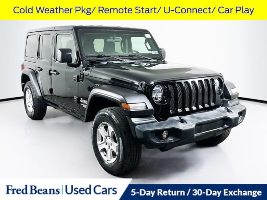 This Wrangler Unlimited Sport S is more than just a capable off-road vehicle; it's a true expression of your adventurous spirit. Featuring a striking Black exterior, the Jeep's rugged good looks are complemented by a wealth of premium amenities, including Apple CarPlay, Android Auto, a 7-inch touchscreen display, and a host of advanced safety and convenience features.