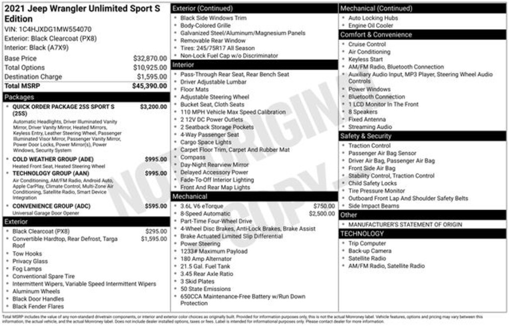Discover the freedom and capability that only a Jeep Wrangler can provide. Experience the unmatched off-road prowess and premium features of this 2021 Wrangler Unlimited Sport S. Visit our showroom today and let us demonstrate how this exceptional vehicle can fulfill your adventurous spirit.