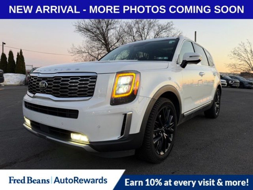 Recent Arrival! 2020 Kia Telluride SX 3.8L V6 DGI DOHC Dual CVVT 8-Speed Automatic AWD 4D Sport Utility Snow White Pearl 10 Speakers, 3.648 Axle Ratio, 3rd row seats: split-bench, 4-Wheel Disc Brakes, ABS brakes, Air Conditioning, Alloy wheels, AM/FM radio: SiriusXM, Apple CarPlay & Android Auto, Auto High-beam Headlights, Auto-dimming Rear-View mirror, Automatic temperature control, Brake assist, Bumpers: body-color, Compass, Delay-off headlights, Driver door bin, Driver vanity mirror, Dual front impact airbags, Dual front side impact airbags, Electronic Stability Control, Emergency communication system: 911 Connect, Four wheel independent suspension, Front anti-roll bar, Front Bucket Seats, Front Center Armrest, Front dual zone A/C, Front fog lights, Front reading lights, Fully automatic headlights, Garage door transmitter: HomeLink, Heated & Ventilated Front Bucket Seats, Heated door mirrors, Heated front seats, Heated Steering Wheel, Heated steering wheel, Hybrid Cargo Net, Illuminated entry, Knee airbag, Leather Shift Knob, Leather steering wheel, Leather-Trimmed Upholstery, Low tire pressure warning, Memory seat, Navigation System, Occupant sensing airbag, Outside temperature display, Overhead airbag, Overhead console, Panic alarm, Passenger door bin, Passenger vanity mirror, Power door mirrors, Power driver seat, Power Liftgate, Power moonroof, Power passenger seat, Power steering, Power windows, Radio data system, Radio: AM/FM/MP3/SiriusXM Audio System, Rear air conditioning, Rear anti-roll bar, Rear audio controls, Rear reading lights, Rear window defroster, Rear window wiper, Reclining 3rd row seat, Remote keyless entry, Roof rack: rails only, Security system, Self-Leveling Rear Suspension, Speed control, Speed-sensing steering, Split folding rear seat, Spoiler, Steering wheel mounted audio controls, Tachometer, Telescoping steering wheel, Tilt steering wheel, Tow Hitch w/Harness, Towing Package, Traction control, Trip computer, Turn signal indicator mirrors, Variably intermittent wipers, Ventilated front seats, Wheels: 7.5" x 20" Black Finish Sport Alloy.
