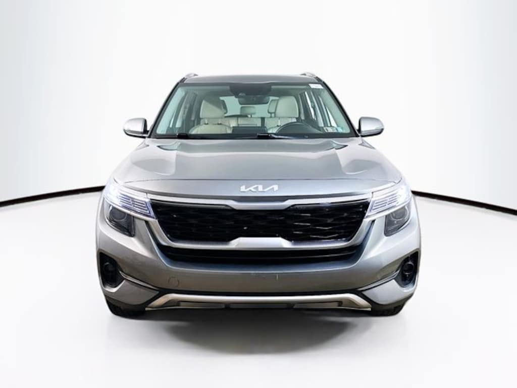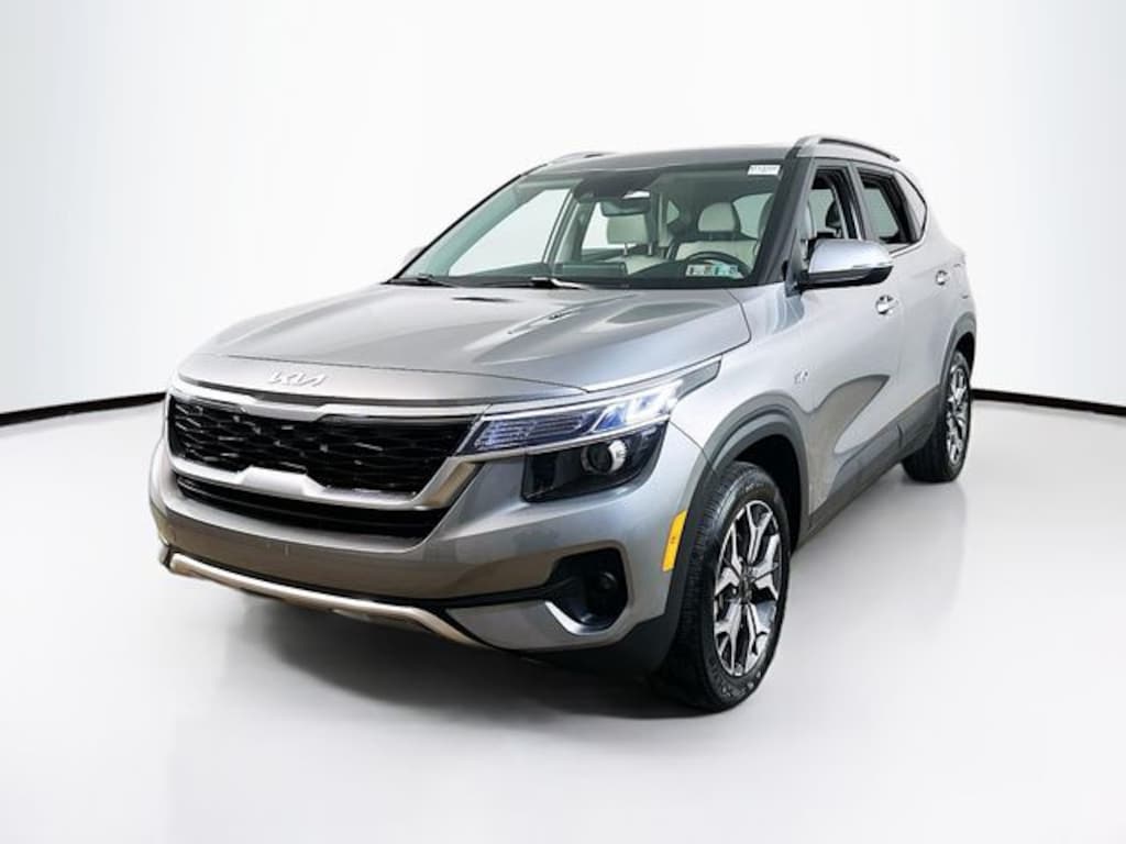 2023 Kia Seltos EX 2.0L I4 MPI CVT AWD 4D Sport Utility Steel Gray 4-Wheel Disc Brakes, 6 Speakers, 6.052 Axle Ratio, ABS brakes, Air Conditioning, Alloy wheels, AM/FM radio: SiriusXM, Apple CarPlay & Android Auto, Auto High-beam Headlights, Automatic temperature control, Brake assist, Bumpers: body-color, Carpet Floor Mats, Delay-off headlights, Driver door bin, Driver vanity mirror, Dual front impact airbags, Dual front side impact airbags, Electronic Stability Control, Emergency communication system: 911 Connect, Exterior Parking Camera Rear, Four wheel independent suspension, Front anti-roll bar, Front Bucket Seats, Front Center Armrest, Front fog lights, Front reading lights, Fully automatic headlights, Gray Interior Color Package, Heated door mirrors, Heated Front Bucket Seats, Heated front seats, Illuminated entry, Leather Shift Knob, Low tire pressure warning, Navigation System, Occupant sensing airbag, Outside temperature display, Overhead airbag, Overhead console, Panic alarm, Passenger door bin, Passenger vanity mirror, Power door mirrors, Power driver seat, Power moonroof, Power steering, Power windows, Radio: AM/FM/MP3 Display Audio w/Navigation, Rear seat center armrest, Rear window defroster, Rear window wiper, Remote keyless entry, Security system, Sofino Premium Leatherette Seat Trim, Speed control, Speed-sensing steering, Split folding rear seat, Spoiler, Steering wheel mounted audio controls, Tachometer, Telescoping steering wheel, Tilt steering wheel, Traction control, Trip computer, Turn signal indicator mirrors, Variably intermittent wipers, Wheels: 17" Alloy w/Machined Finish.