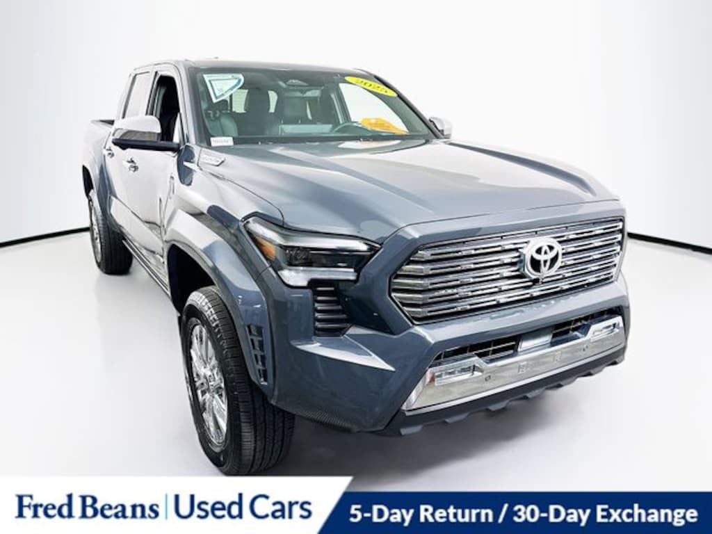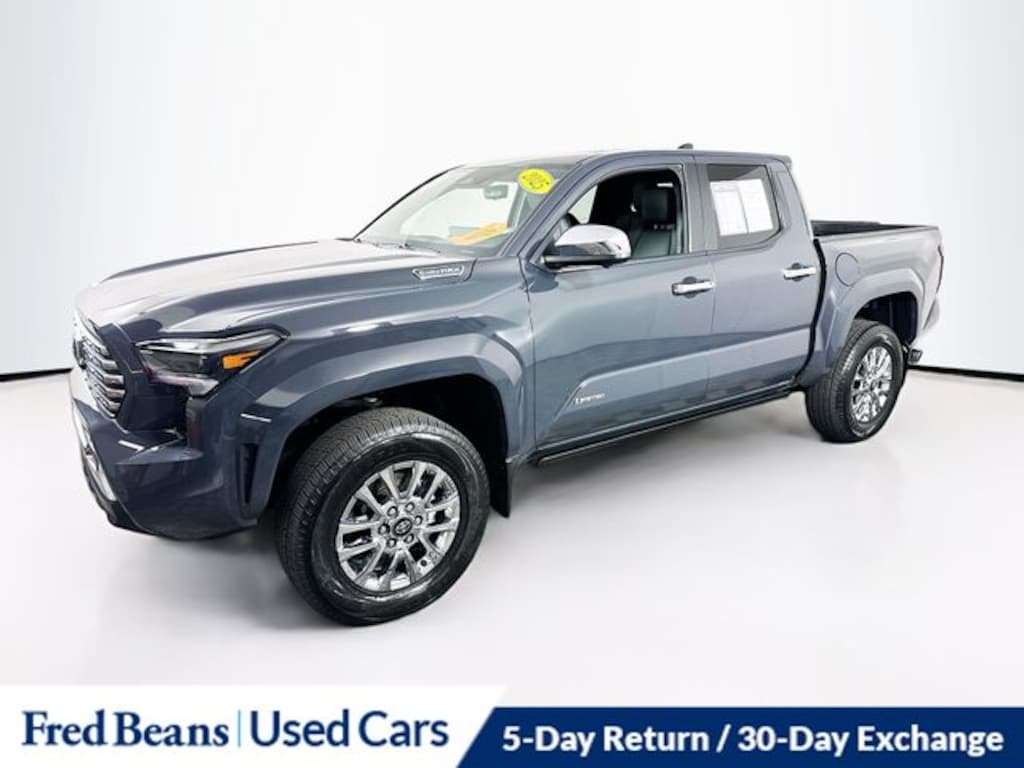 Recent Arrival! 2025 Toyota Tacoma Hybrid Limited 2.4L I4 PDI Hybrid Turbocharged DOHC 16V 8-Speed Automatic 4WD 4D Crew Cab Underground 5 Day Return / 30 Day Exchange, Auto Reward Program, Tacoma Hybrid Limited, 4D Crew Cab, 2.4L I4 PDI Hybrid Turbocharged DOHC 16V, 8-Speed Automatic, 4WD, Underground, Black w/SofTex Seat Trim, ABS brakes, Active Cruise Control, Alloy wheels, Electronic Stability Control, Front dual zone A/C, Heated & Ventilated Front Bucket Seats, Heated door mirrors, Heated front seats, Illuminated entry, Low tire pressure warning, Navigation System, Power moonroof, Remote keyless entry, Traction control.