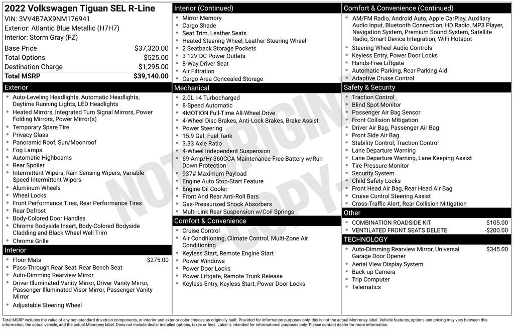 Recent Arrival! 2022 Volkswagen Tiguan 2.0T SEL R-Line 2.0L TSI DOHC 8-Speed Automatic with Tiptronic AWD 4D Sport Utility Atlantic Blue Metallic Great Service History, Remainder of Factory Warranty, Factory Certified Vehicle, Auto Reward Program, AWD.
